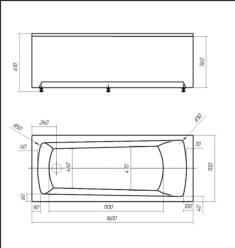 Толщина ванны, мм