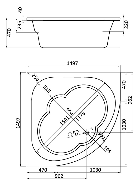 Толщина ванны, мм