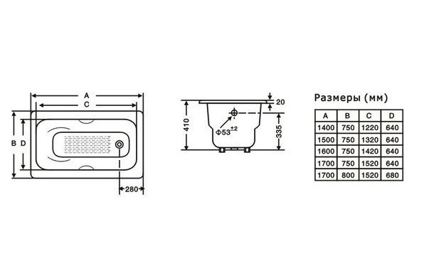 Толщина ванны, мм
