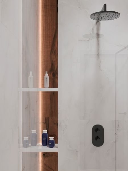 Полированная поверхность не только визуально увеличивает пространство, но и придаёт ему сияние, напоминая о холодной красоте натурального камня. Нейтральный оттенок позволяет создать гармоничное сочетание с мебелью и декором, подчеркивая уникальность каждого пространства.
