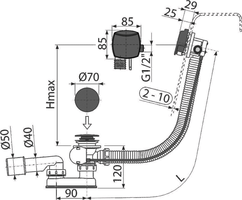 Диаметр подключения, см