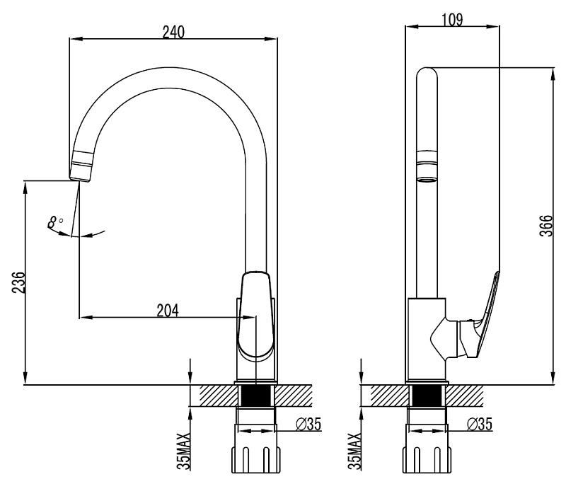 Высота излива, см