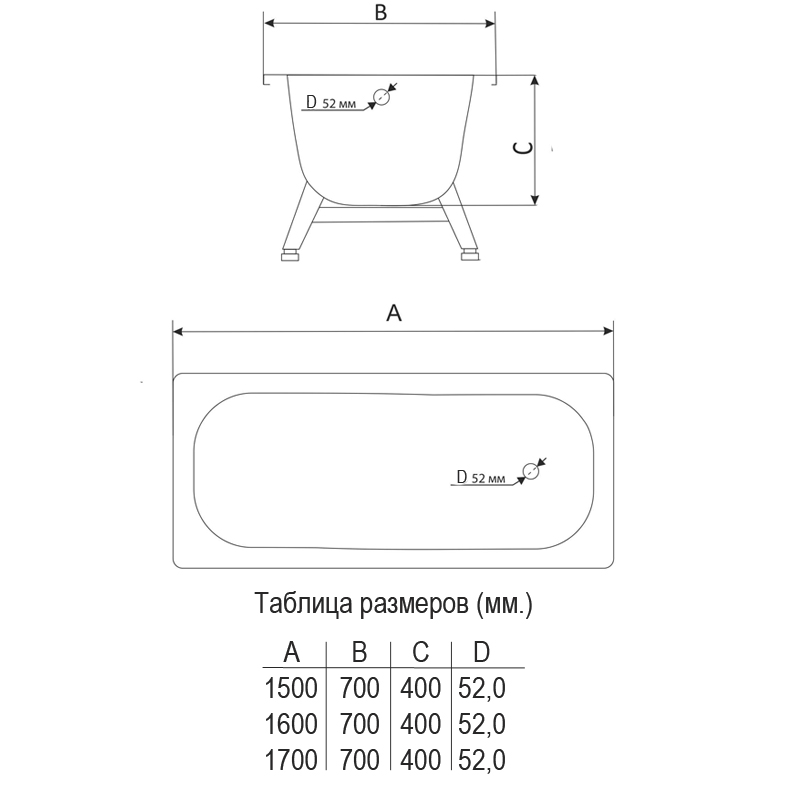 Толщина ванны, мм