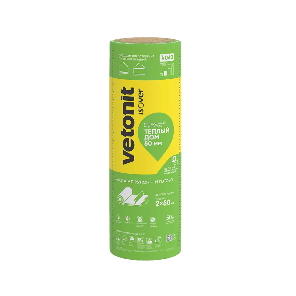 Рулоны длиной до 8 200 мм (для других SKU — 7 000, 5 490) позволяют утеплять большие поверхности быстро и без мостиков холода: раскатал рулон — и готово!